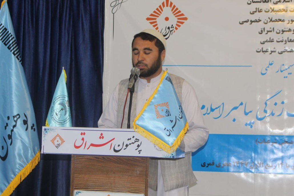 🔸 برگزاری سیمینار علمی با عنوان “اصول حاکم بر سبک زتدگی پیامبر اسلام ص” در پوهنتون اشراق