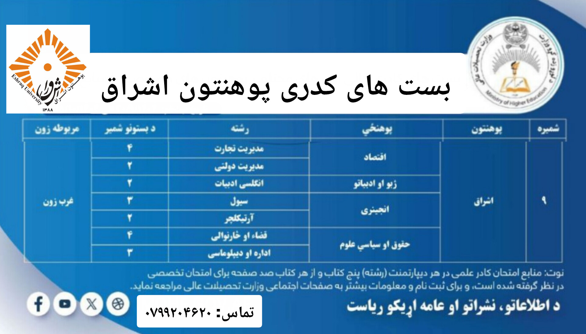 پوهنتون اشراق برای تکمیل کدر علمی خود، بست های ذیل را به داوطلبی قرار می دهد